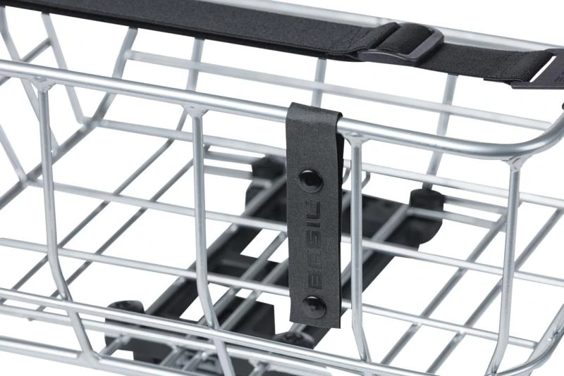 Cykelkurv fra Basil. Passer til MIK-system (inkl. adapter). Med MIK systemet gør det nemt for dig at montere og afmontere kurven. Der medfølger justerbar elastikstrop.
