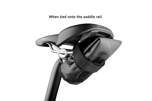 Tasken kan monteres på sadelrørerne med den medfølgende velcrostrop.